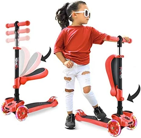 - SIT OR STAND DESIGN WITH FOOT REST: This scooter for toddlers is equipped w/ a unique 45lb capacity removable flip-out seat which kids can use while cruising along with the built-in foot pad. Can be detached when they feel more confident standing up
