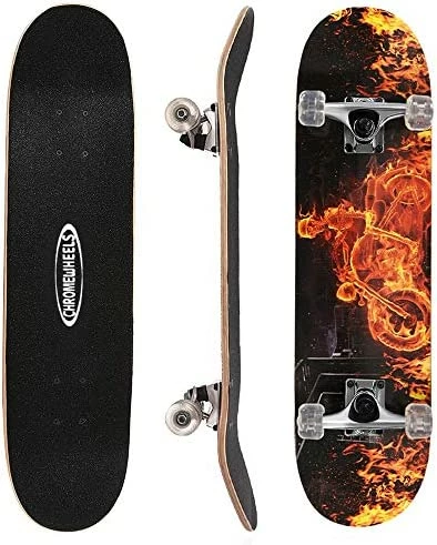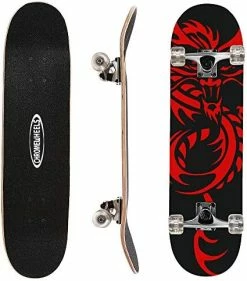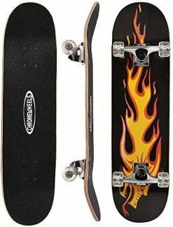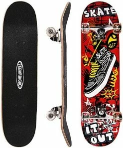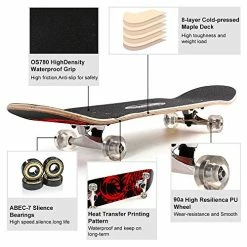 - Durable & Stable – High density 8 layer maple wood skateboard with emery non-slip surface provides a stable and more powerful grip during skating; Max supporting weight 220 lbs(100KG), suitable for adults and kids.