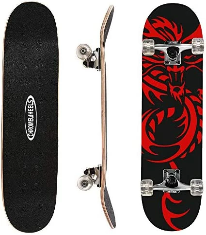 - Suitable for All Level Skaters – 31 x 8 inch full size double kick concave design with vintage pattern provides better control and easy to brake; this Skateboard is ideal for Beginner and Pro doing some basic stunts and other tricks.