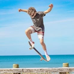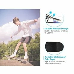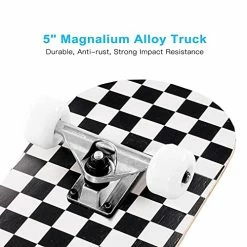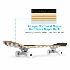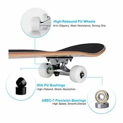 - 【STURDY & STABLE】31″ ×7.8″ high density 7 layers maple wood skateboard, provides a stable and powerful grip. Max supporting weight 220 lbs. 5″ heavy-duty aluminum alloy trucks making the skateboard reliable, safe for beginners or expert riders.