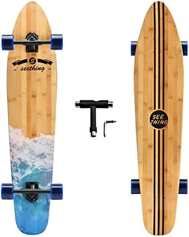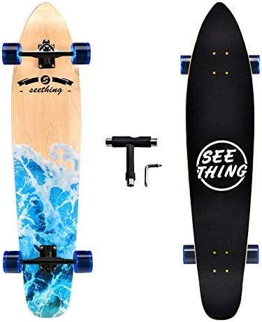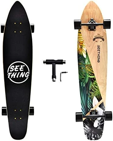 - Perfect Design–42-inch Longboard Skateboard designed for cruising, made 9 layers of high-quality Canadian maple. Suitable weight and lighter weight makes freestyle slalom easier and dancing more stable. The seething longboard is your everyday choice for getting from A to B in style and improving those freestyle skills. Feel free to play around with this one.
