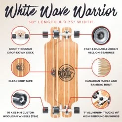 - The Bamboo Warrior: Easy to ride and super comfortable kick around because of its Drop Through Trucks and Drob Down Deck. It makes pushing around the streets effortless. This model is great for carving in the neighborhood, on campus or cruising the coastline. The mild concave, low center of gravity, and symmetrical shape makes it easy to maneuver.