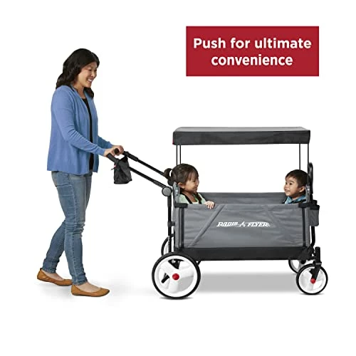 - SAFE FOR KIDS: Radio Flyer Stroll Nβ Wagons pass the ASTM-f963-13 toy safety standard. This wagon includes a rear foot brake, 5-point safety harnesses and a UV protection canopy to protect your little ones from the sun.