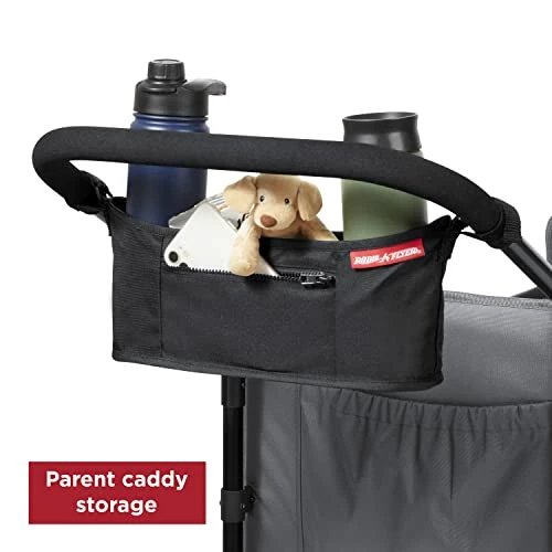 - STORAGE CAPACITY: This Stroll Nβ Wagon includes a parent caddy for the adult’s storage needs and internal storage pockets for the little ones. It also comes with a rear storage pouch to store the canopy in when not in use and two front cup holders.