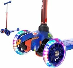 - AWESOME LED LIGHTS β Rugged Racers printed scooters come with our unique, eye catching LED lighted wheels. Just simply start riding to activate. With 120mm PU flashing wheels, it’s wear-resistant and anti-slip contributes to smooth noiseless gliding. The wheels can adapt to various pavement such as the pebbles grass, concrete, wooden floor and on the carpet.
