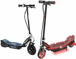 - Blue LEDs on the deck that light up each time you twist the throttle!.Kickstand: Retractable. Some assembly required