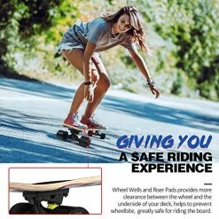 - Sturdy and Strong: The board is 10 mm thick and composed of 7-ply Canadian Maple Wood, strong and durable to withstand riders up to 220 pounds. It’s equipped with 5 inches heavy-duty aluminum alloy trucks, making them reliable and sturdy, safe for beginners and expert riders.