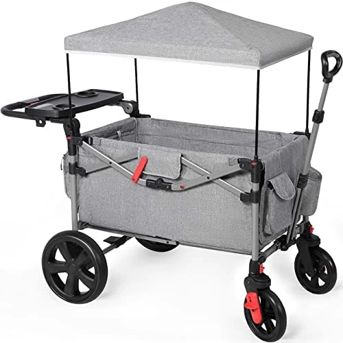 - γEASY PUSH & PULLγThis foldable stroller wagon features an fold-away stroller push handle on the back and the front is a 3-section telescopic lockable pull handle . This wagon is great for kids and also is capable of hauling oversized cargo because of the superior design .