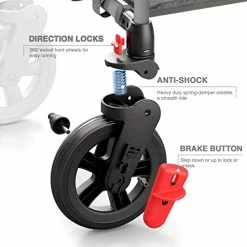 - γDURABLE WHEELSγThis wagons for kids is designed with 360Β° rotating front wheels and 12”easy-push rear wheels with one step foot brake . Four upgraded PU wheels with anti-shock system creates friction-free movement and smooth ride.