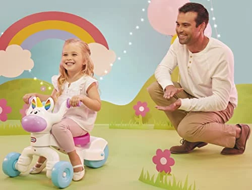 - UNICORN THEMED RIDE-ON SCOOT FOR TODDLERS β Kids will love riding their unicorn over the rainbow.