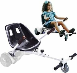 - 【SAFE & COMFORTABLE】-Use our seat attachment to transform your hoverboard into a go-kart. Kids can comfortably sit on the hoverboard instead of standing on it, which is more stable and safer. No more worries about kids falling down and getting injured. Made in comfortable shape, the thickened, reinforced seat bears 200lbs weight, big enough for kids and adults.