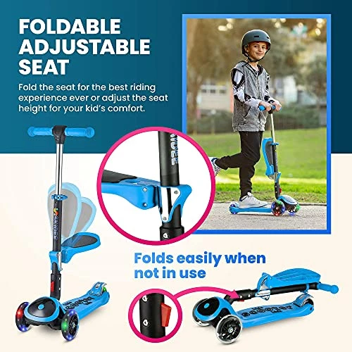 - ? ?-??-?, ??? ?? ????? ??????? – With its adjustable and removable seat, this Kids Scooter offers ultimate versatility. It allows your kids to comfortably scoot sitting or standing up.