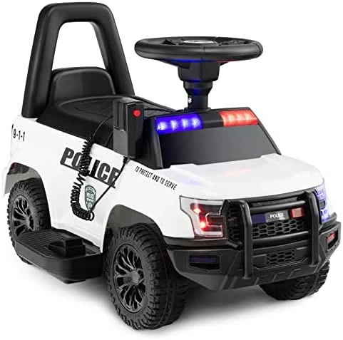 - γPerfect Gift for KidsγCovered with decorative stickers, this ride on push car can make siren sounds, and the bright headlights will give flickering blue and red lights, adding more joy to childrenβs riding. This ride on police car is the ideal ride on car toy for kids as a gift on Birthday, Halloween, Christmas, New Year, etc.