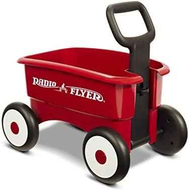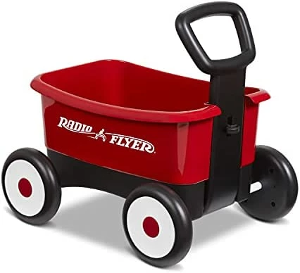 - 2 WAGONS IN 1: The handle of the My 1st 2-in-1 Wagon with Garden Tools can lock as a walker wagon or released for a pull wagon.