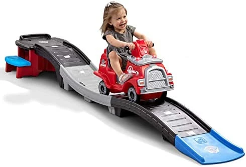 - Non-slip steps let your little one climb up to the platform from either side and access the themed character coaster car