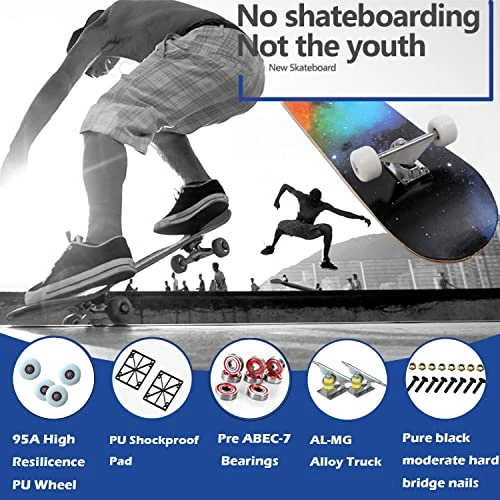 - Cool Graphics DesignοΌThe patterns of our skateboards are bright and unique. Using thermal transfer technology, the pattern is not easy to fade, and can maintain gloss for a long time. You can choose a variety of styles, very suitable for boys, girls, and adults.