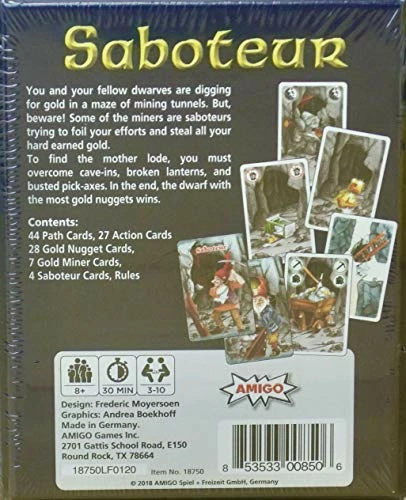 - INCLUDES: 44 Path Cards, 27 Action Cards, 28 Gold Nugget Cards, 11 Character Cards (7 Gold Miners, 4 Saboteurs), Illustrated Instructions