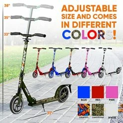 - ADJUSTABLE T-BAR HANDLEBAR β The adjustable T-Bar handlebar is another great feature of this Camouflage scooter as you can adjust the height to 3 different variations for your comfort, making this kick scooter perfect for older children