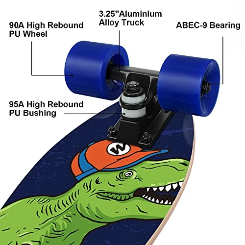 - ? Sturdy & Solid: 22.05Γ6 inch full size skateboard, 6 layers Canadian maple deck match with magnalium alloy truck provide you solid and reliable support. Waterproof and high density non-slip emery griptape which provide high friction and strong anti-slip, also help you learn more tricks easily.