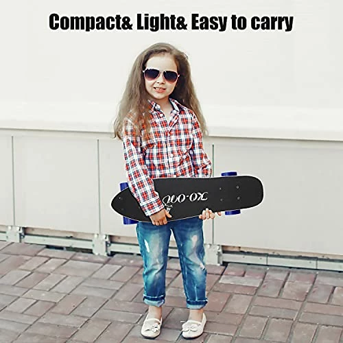 - ? Get Ready to Go: No assemble required! A big convenience is that our skateboard comes fully assembled. Just take it out of box and ready to enjoy your joyride! Weighs only 3.5 pounds, you can easily ride, control and carry it around.