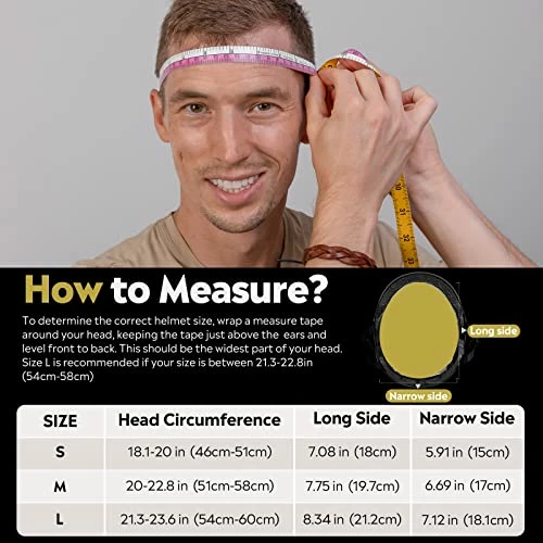 - HOW TO MEASURE A PROPER HELMET? – To find the right size bike helmet, start by measuring your head circumference, wrap a flexible tape measure around the largest portion of your headβabout one inch above your eyebrows. Or, wrap a string around your head, then measure the length of string with a yardstick. Size Large is recommended if your size is between 21.3-22.8inch (54cm-58cm).