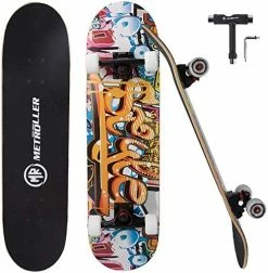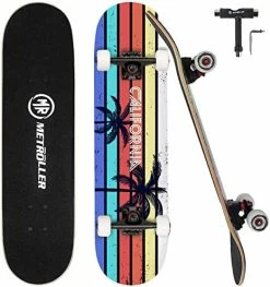 - Sturdy & Solid: 31 in x 8 in complete skateboard, 7 layers Canadian maple wood deck match with 5 inch reinforced aluminum alloy trucks provide you solid and reliable support. Maximum carrying weight of the skateboard is up to 220 pounds.