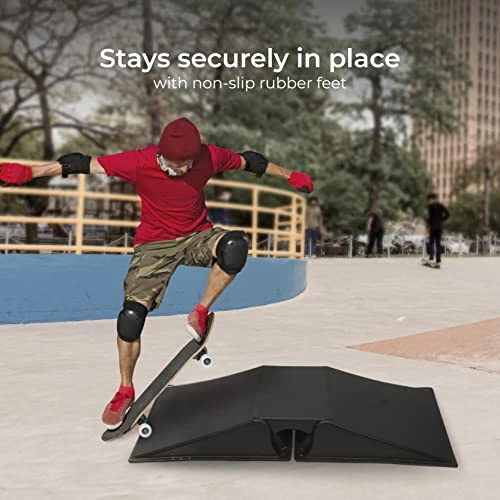- Stays Safely In Place; Thanks to the non-slip rubber feet, our double skateboard ramps set stay securely in place on any flat surface whether jumping or grinding making it ideal for daily use