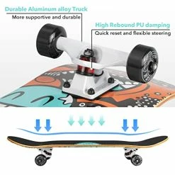 - SUITABLE FOR ALL LEVEL SKATERS: 31 x 8 inch full size double kick concave design with vintage pattern provides better control and easy to brake; this Skateboard is ideal for Beginner and Pro doing some basic stunts and other tricks.